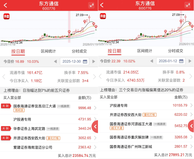 自2025年12月中旬起,东方通信股价悄然启动上涨。数据显示,从去年12月11日到今年1月14日,东方通信的股价累计涨幅达到88.58%,这种强势表现让它迅速成为市场焦点。不少网友直呼:昔日的大妖股东方通信,又支棱起来了。